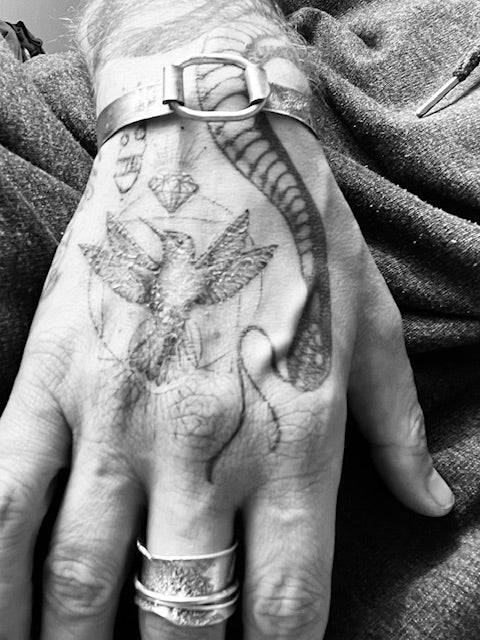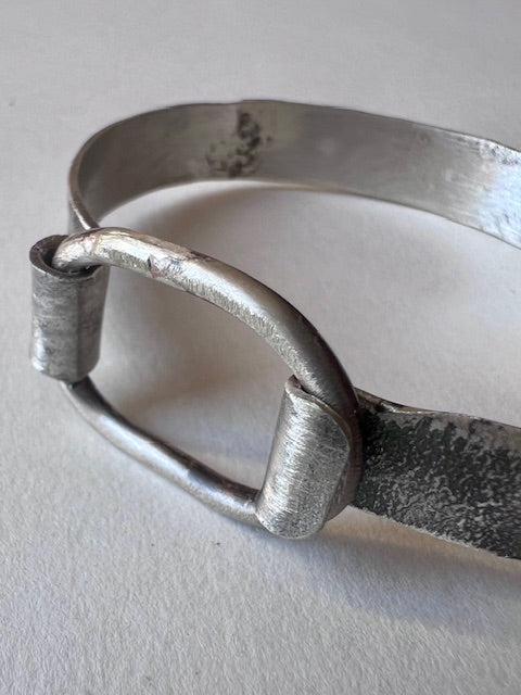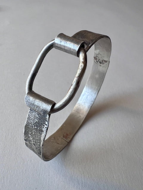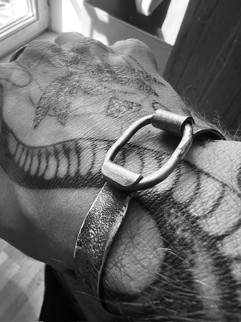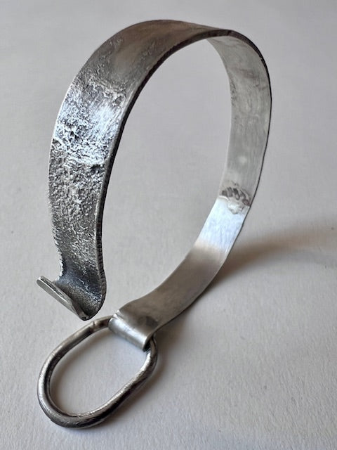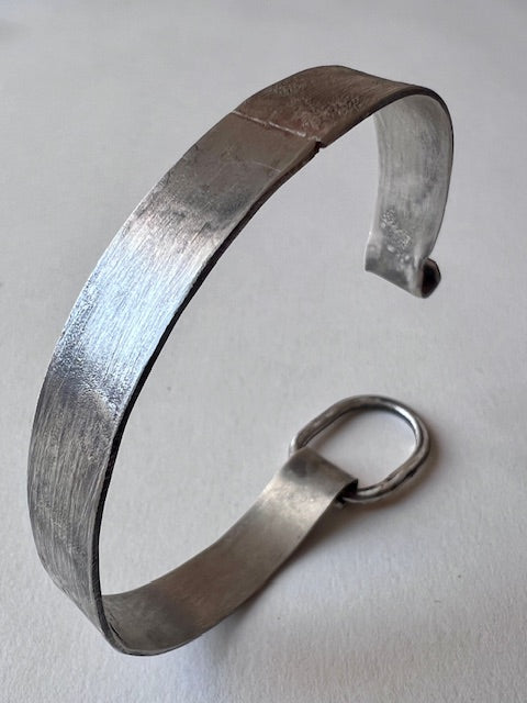 Hand-forged solid silver cuff, heavily textured for a raw, tactile feel.