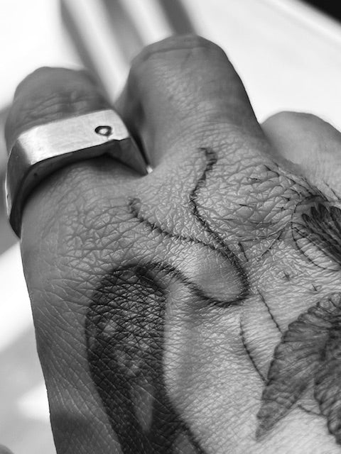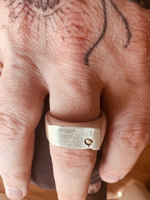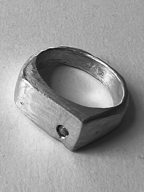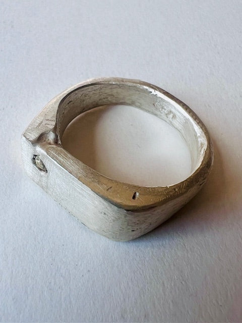Solid silver ring, clay-casted for texture.