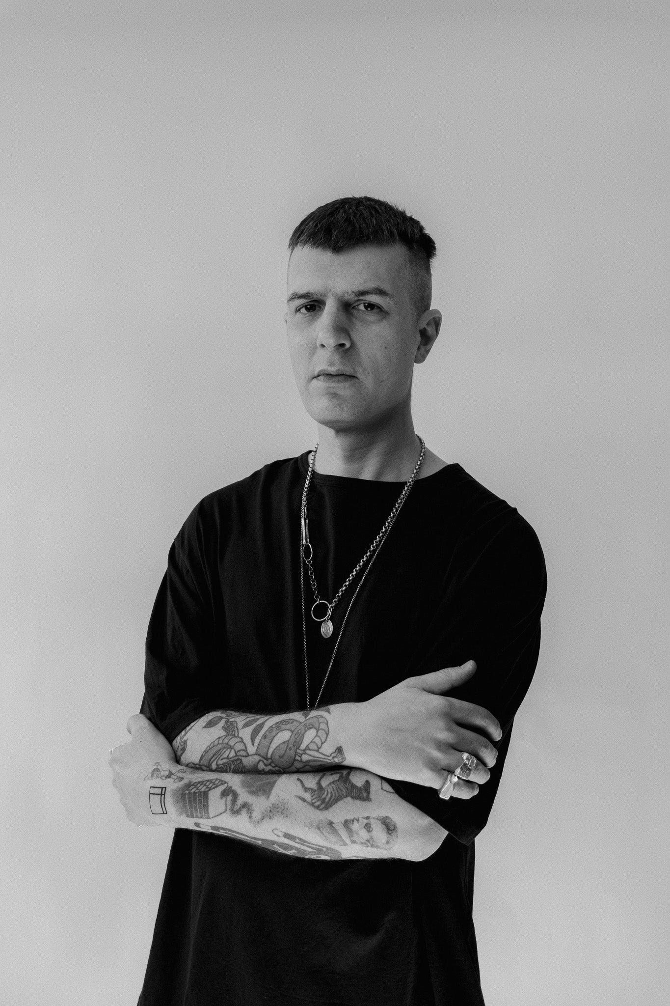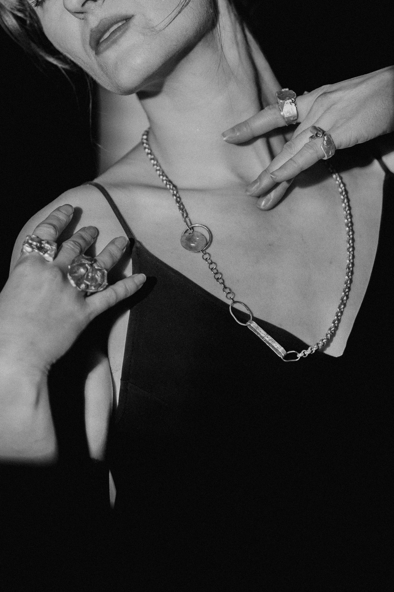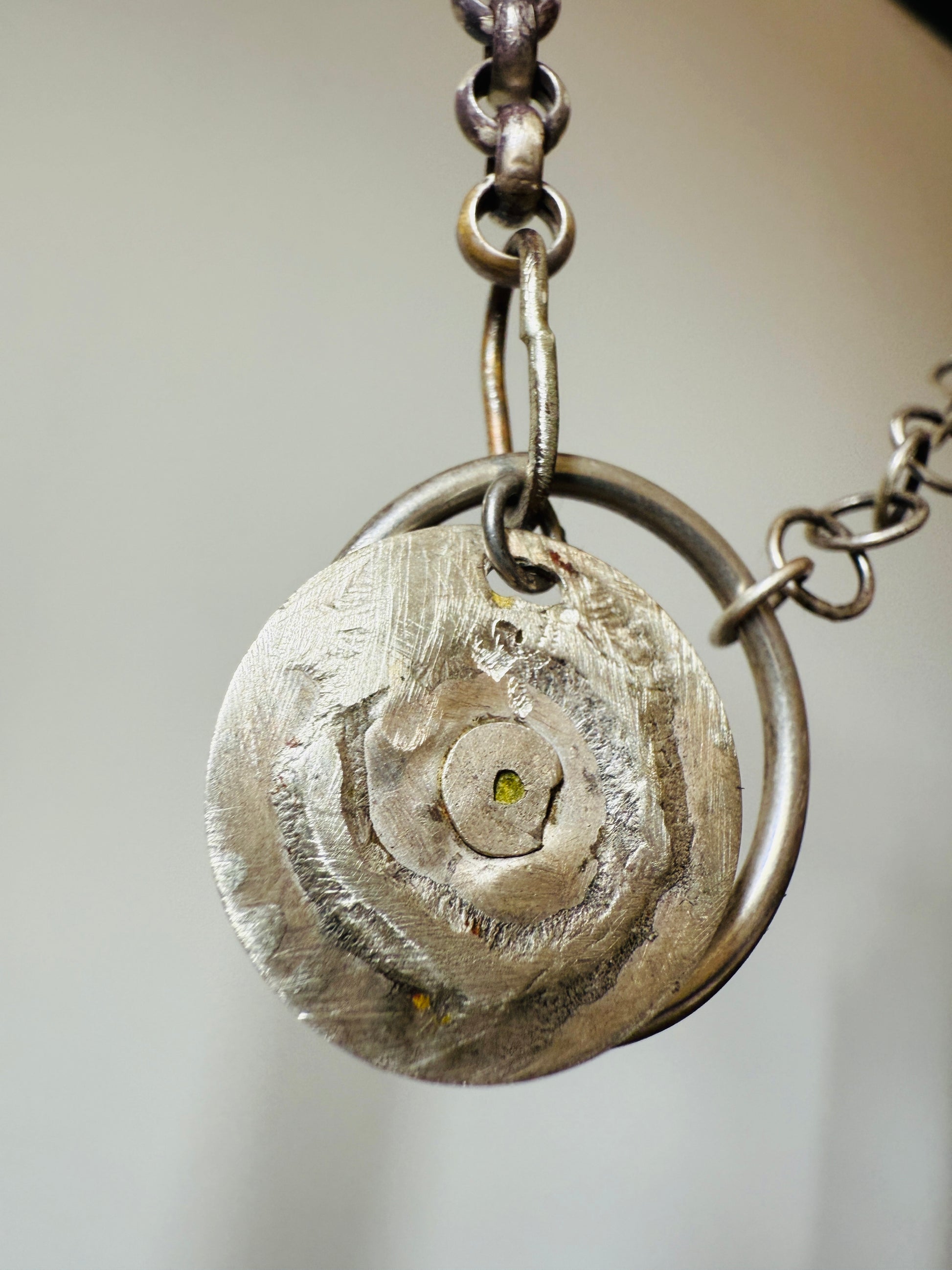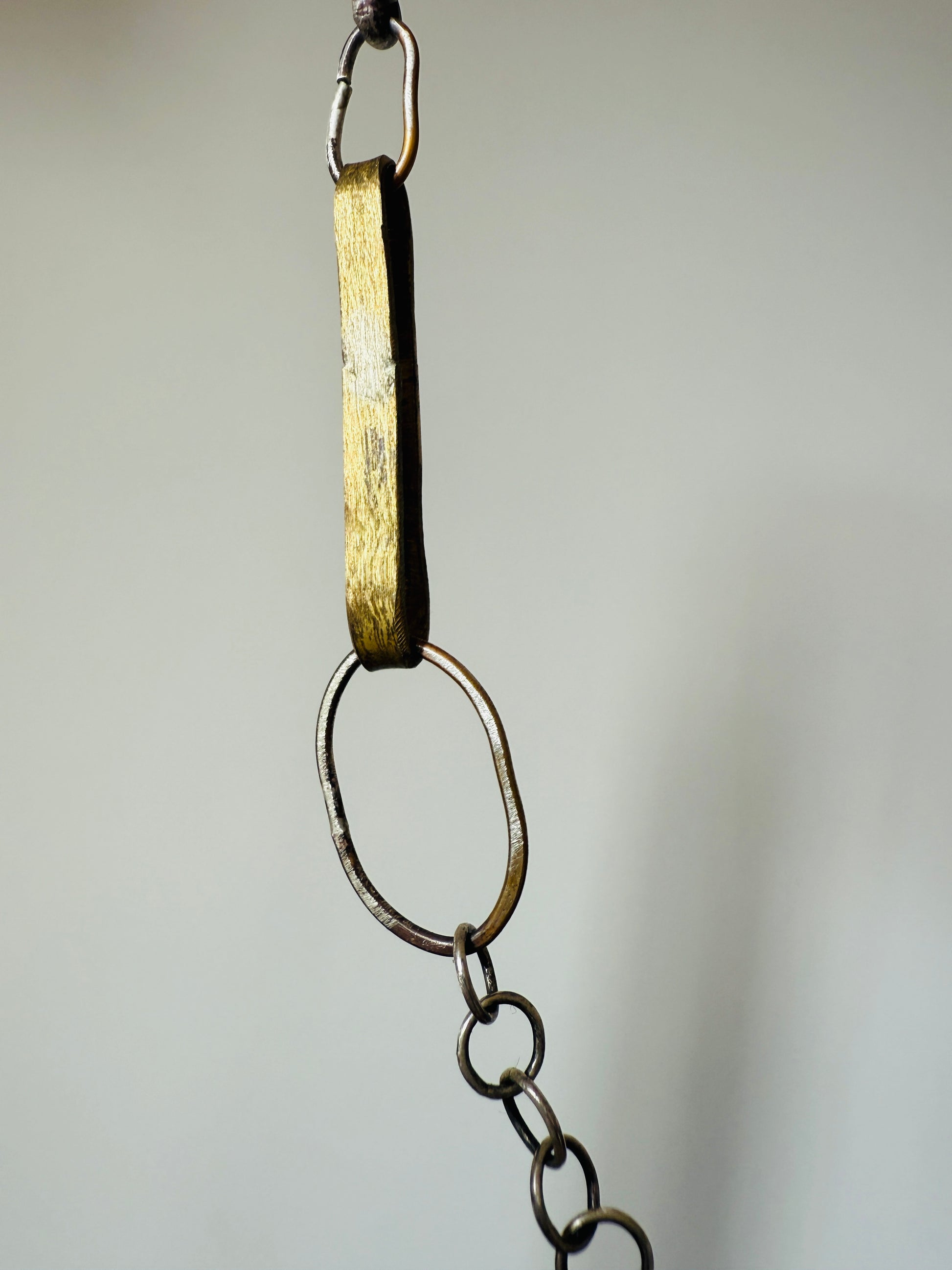 Solid silver necklace with hand-forged silver and brass shackles and charms.