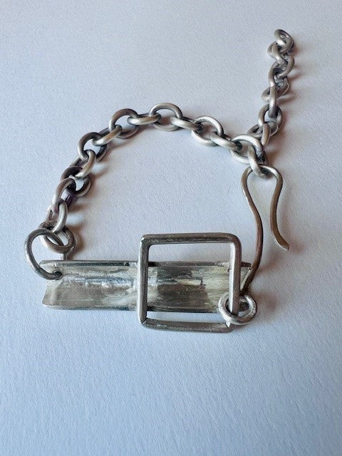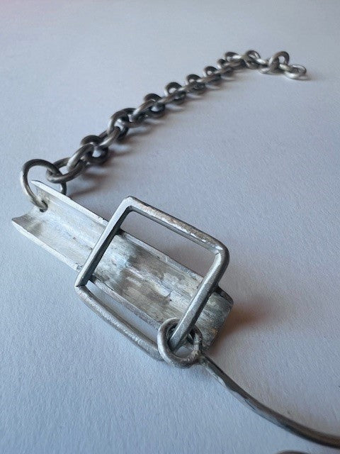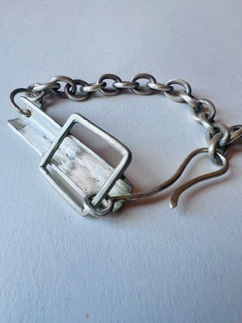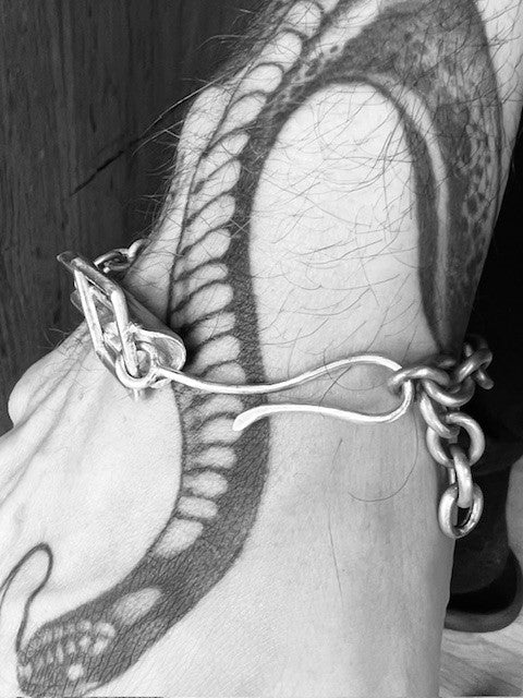 Solid silver bracelet with a hand-forged, ornate silver lock.