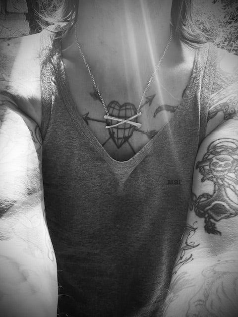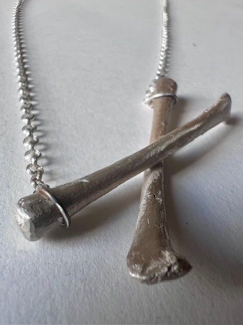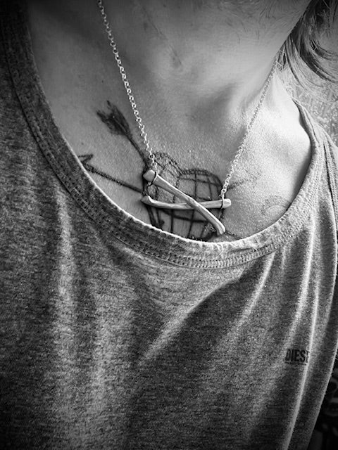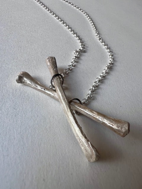 Necklace with a solid silver, clay-casted cross pendant.